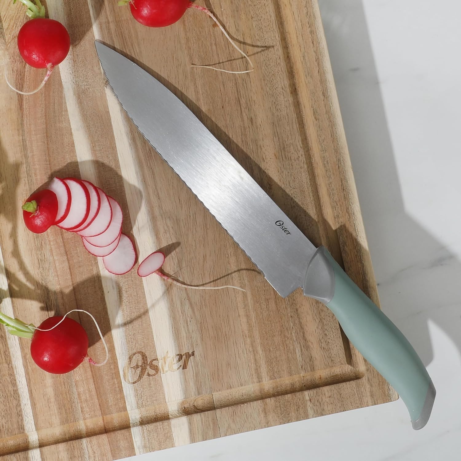 GET CREATIVE IN THE KITCHEN: From the basic techniques to the more elaborate recipes, Oster knives create a space for home cooks to hone their culinary craft one recipe at a time. Each knife features a stamped construction to provide ease of use and manueverability.