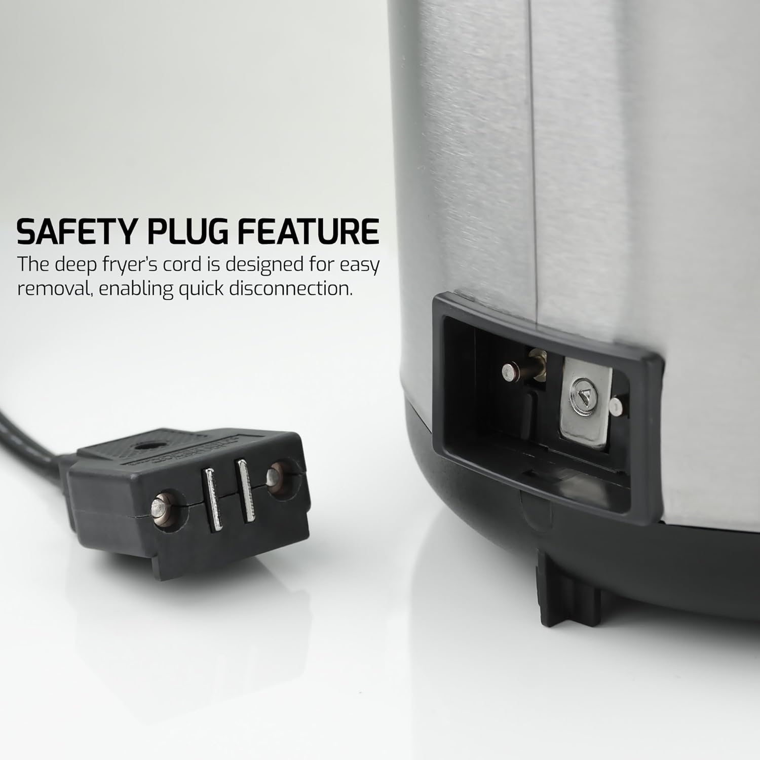 SAFETY FEATURES YOU’LL APPRECIATE – Locking lid minimizes splatter and odor, while cool-touch handles protect hands and enhance handling safety. The deep fryer’s cord is designed for easy removal, allowing quick disconnection in emergency situations.