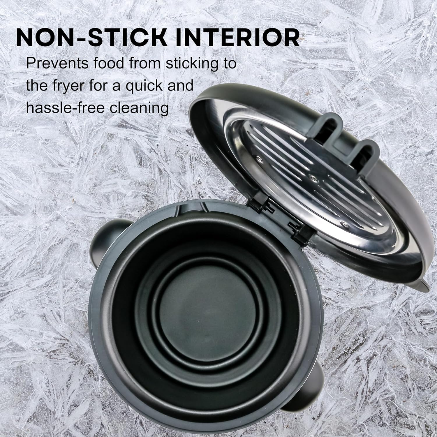 FAST & POWERFUL FRYING – 840W concealed heating element rapidly heats oil for perfectly crispy and evenly cooked results every time. Ideal for quick snacks and small meals.