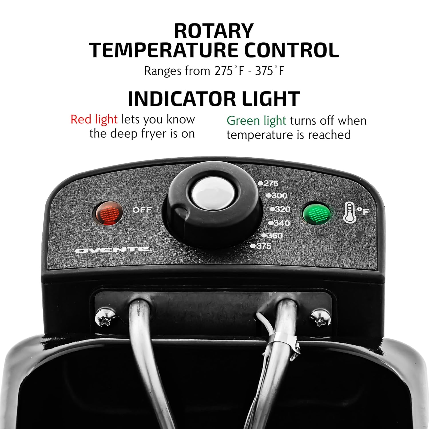Fry like a professional and satisfy your cravings with the OVENTE Electric Deep Fryer FDM2201BR model! Enjoy all your favorite snacks or meals like crispy buffalo wings, fish sticks, onion rings, shrimp tempura, egg rolls, pork chops, and more, all from the comfort of your home. This high-performance fryer features a thermostat knob that heats up to 375°F and a 2L oil tank capacity—enough to cook delicious deep-fried meals for your entire family. Designed to handle high temperatures, it also includes a viewing window so you can monitor the frying process and achieve that perfect golden-brown, crispy finish. For best results, use oil with a high smoke point and neutral flavor, such as vegetable, peanut, or grapeseed oil. To avoid overcrowding and maintain the perfect frying temperature, fry in batches. The deep fryer features a large basket, a locking lid for a mess-free frying experience, and a convenient resting hook for easy oil drainage. Plus, its cool-touch handle ensures safety while handling the hot basket. Cleanup is hassle-free with a non-stick cooking container and the removable frying basket is dishwasher safe. With its sleek brushed stainless steel exterior, this deep fryer is a stylish addition to any modern kitchen, combining both functionality and elegance.