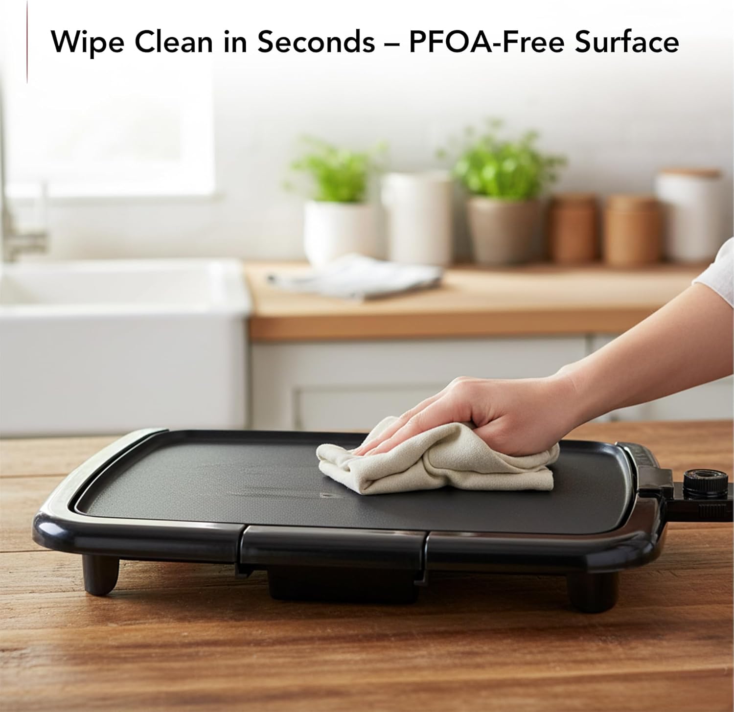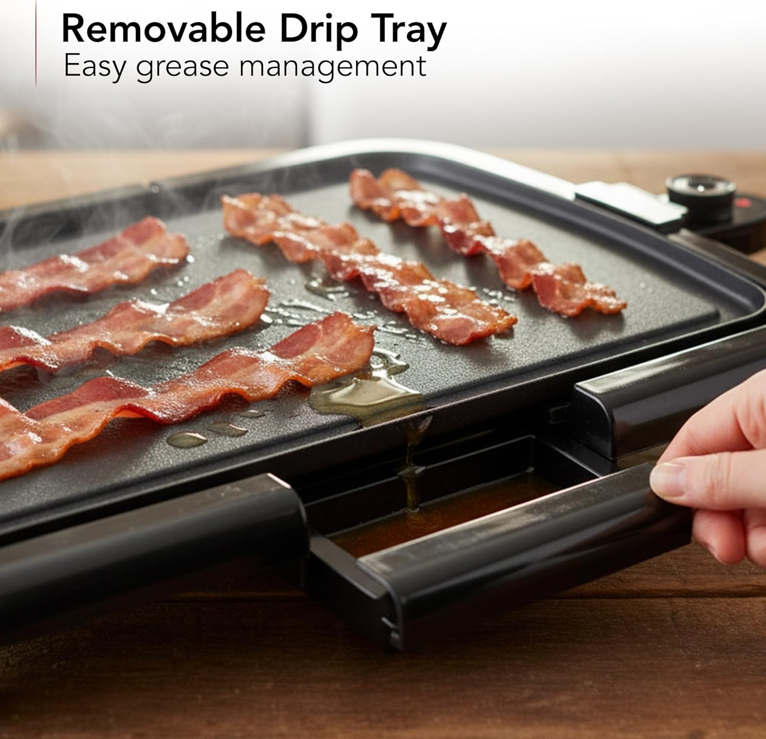SAFE & EASY CLEANUP – Our griddle electric is PFOA-free and includes a drip tray to catch grease. Cleaning is simple: wash the griddle and removable tray with warm, soapy water. Use a soft, non-metal cleaning pad for the non-stick plate.