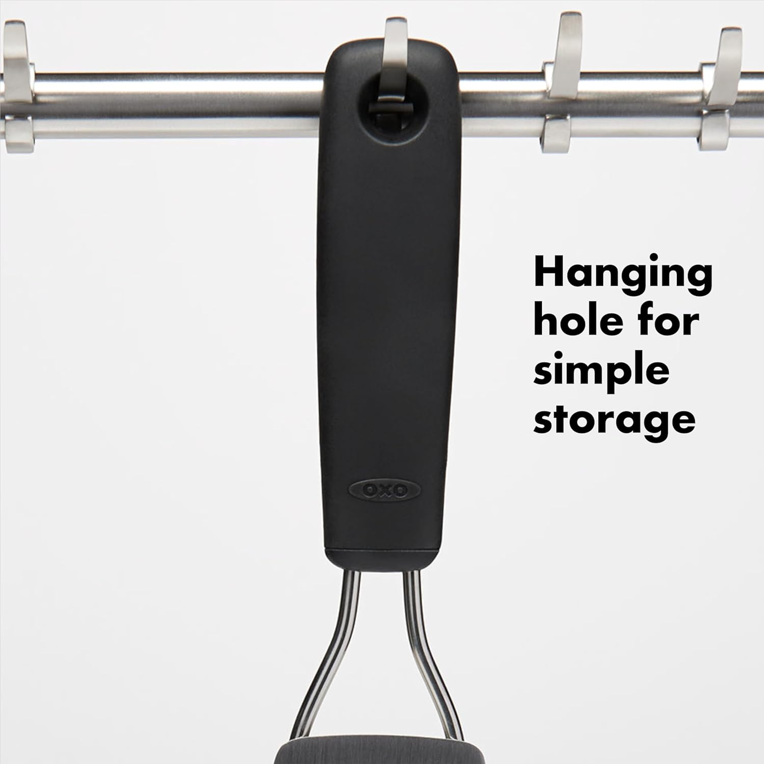 The OXO Good Grips Fish Turner is the perfect tool for so much more than fish. While it is ideal for cooking whole fish, filets and seafood cakes, it’s also a great option for delicate foods like crepes and omelets. The flexible head and beveled edge slide easily beneath foods, and the slotted design allows grease to drain when flipping foods like burgers. The durable, stainless steel head is oversized for larger fish and sheet pans full of veggies or French fries, and the soft handle provides for a comfortable grip. Dishwasher safe.