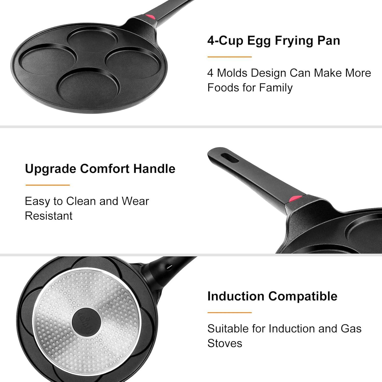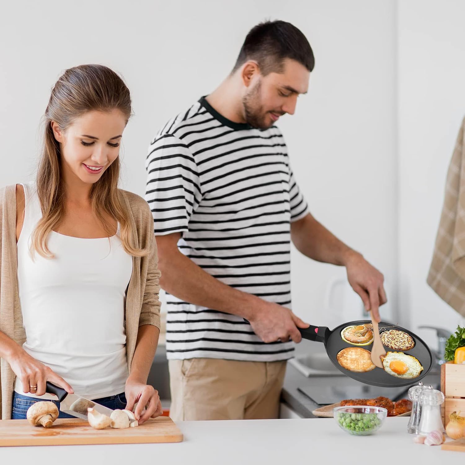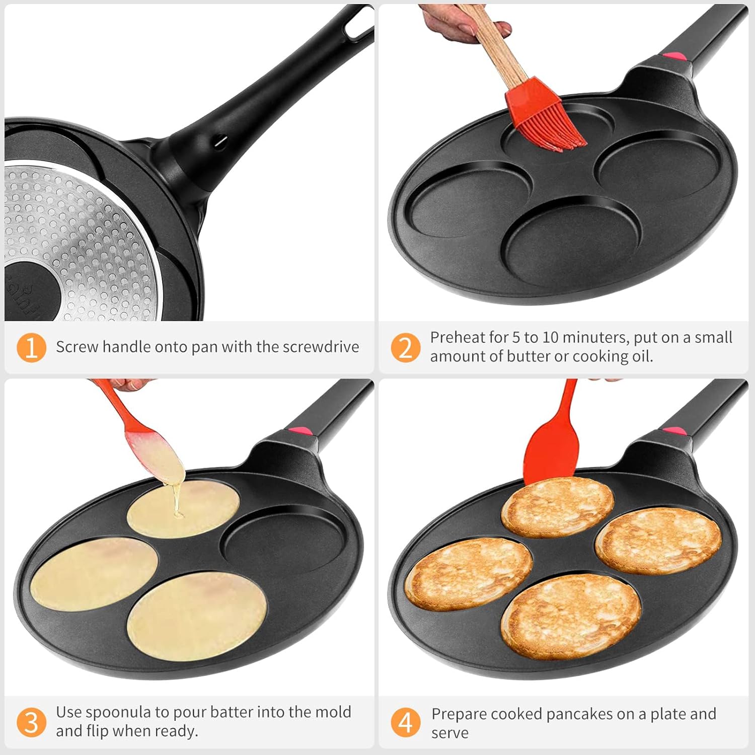 Heats Quickly & Evenly – Made of sturdiness die cast aluminum, durability and light weight. 3 – layer thickened pot bottom evenly heated ensures maximum heat transfer for fast, not leave dark spots on your mini pancakes / omelets.