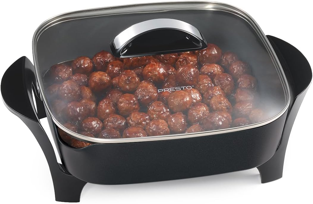 HIGH SIDEWALLS FOR GREATER CAPACITY: Designed with high sidewalls, this Presto skillet offers more cooking capacity, making it perfect for family meals or larger dishes, all while saving you from using the oven or range burner