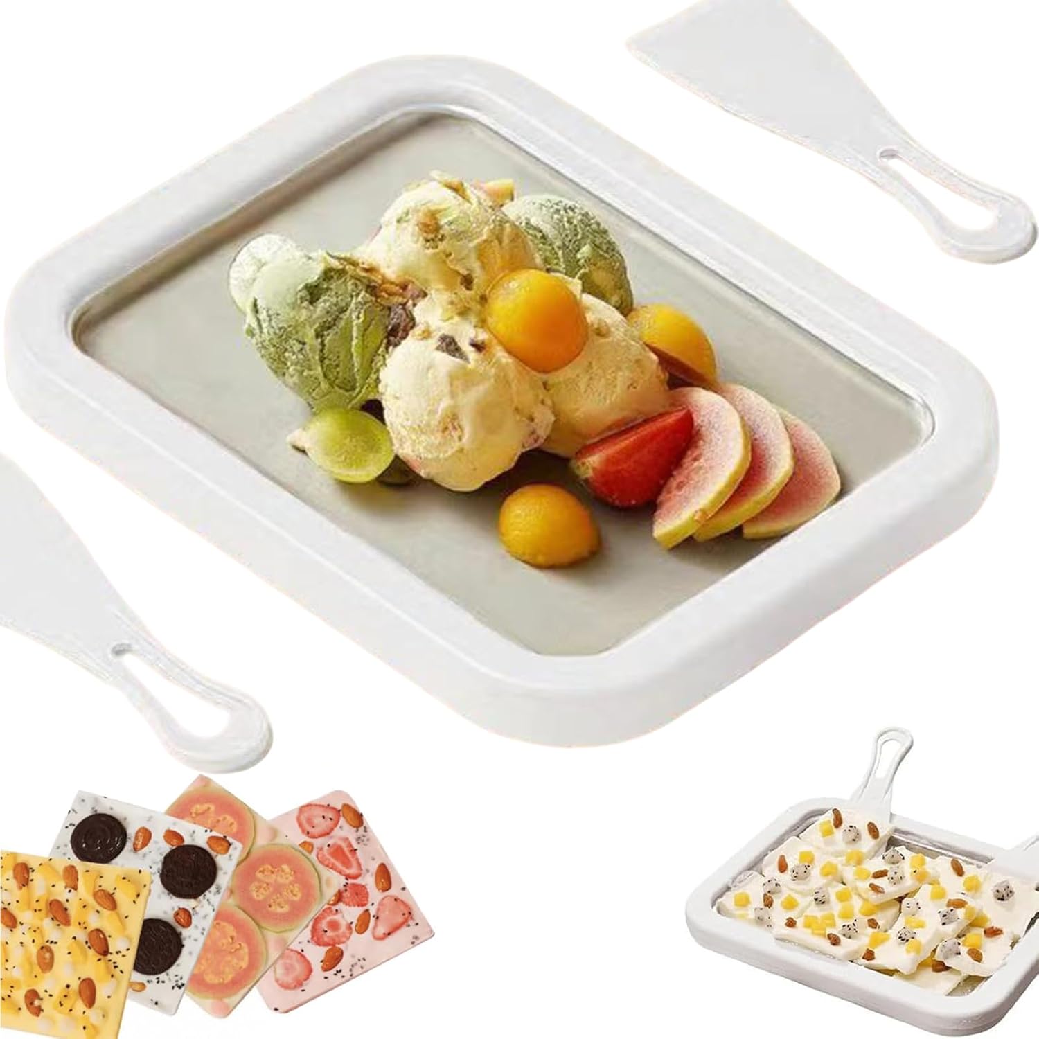 Rolled Ice Cream Maker, At-Home Rolled Ice Cream Machine with Instant Freeze Tray & 2 Scrapers,DIY Fun Family Activity Instant Ice Cream Maker for Yogurt, Sorbet (White)