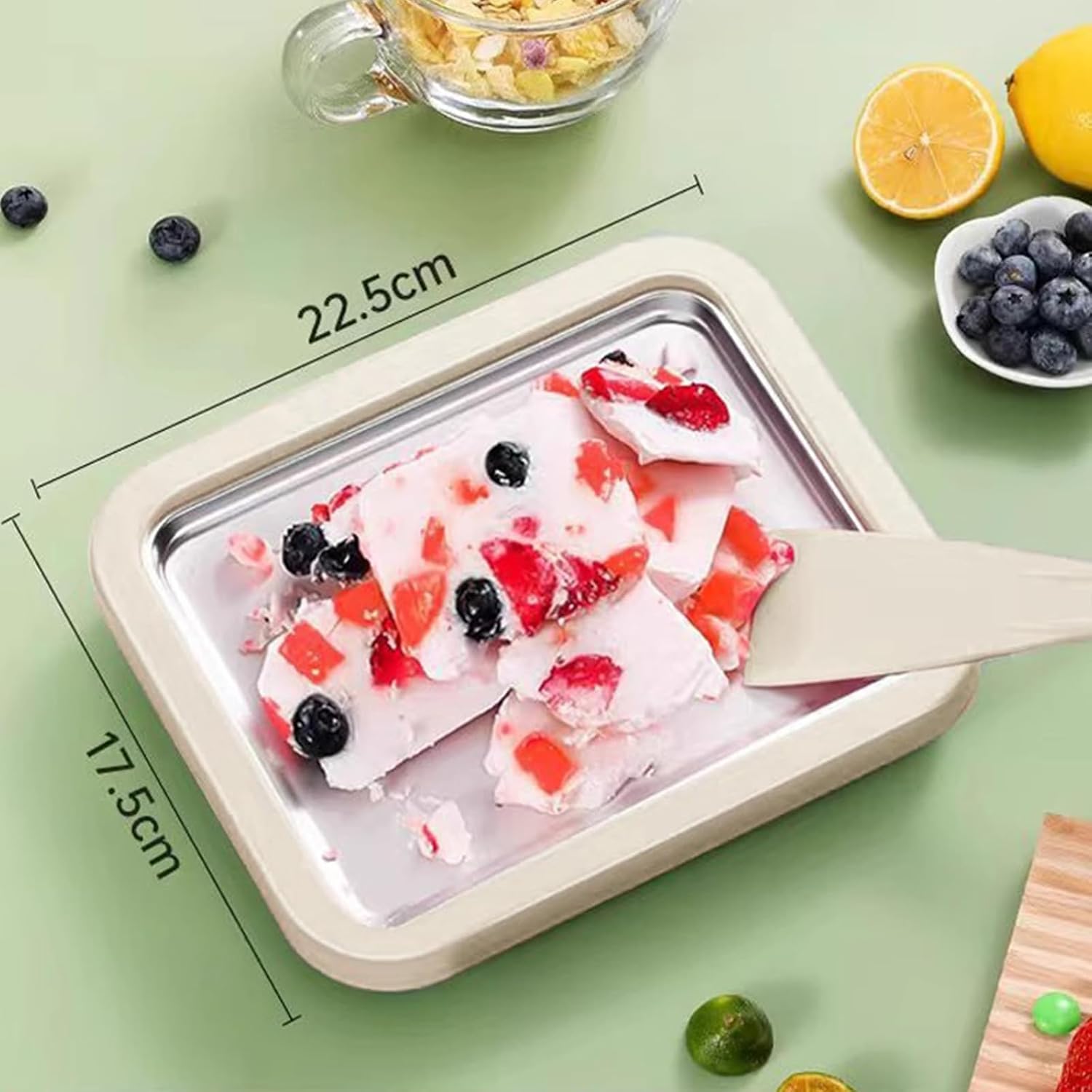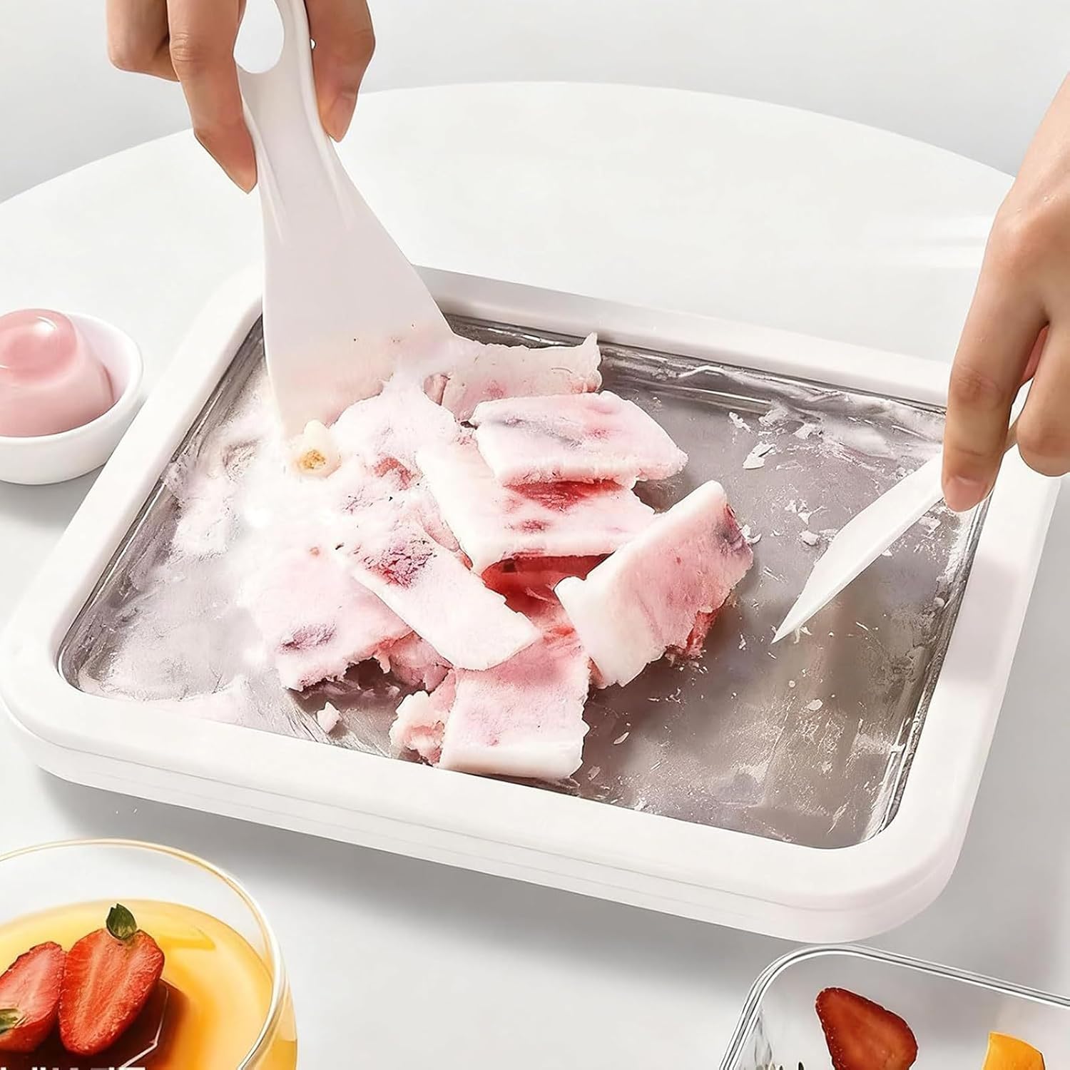 Quick & Simple: Rolled ice cream maker requires no electricity! Simply freeze the rolled ice cream tray for 12 hours, pour in your base, and use the spatulas to roll your creation