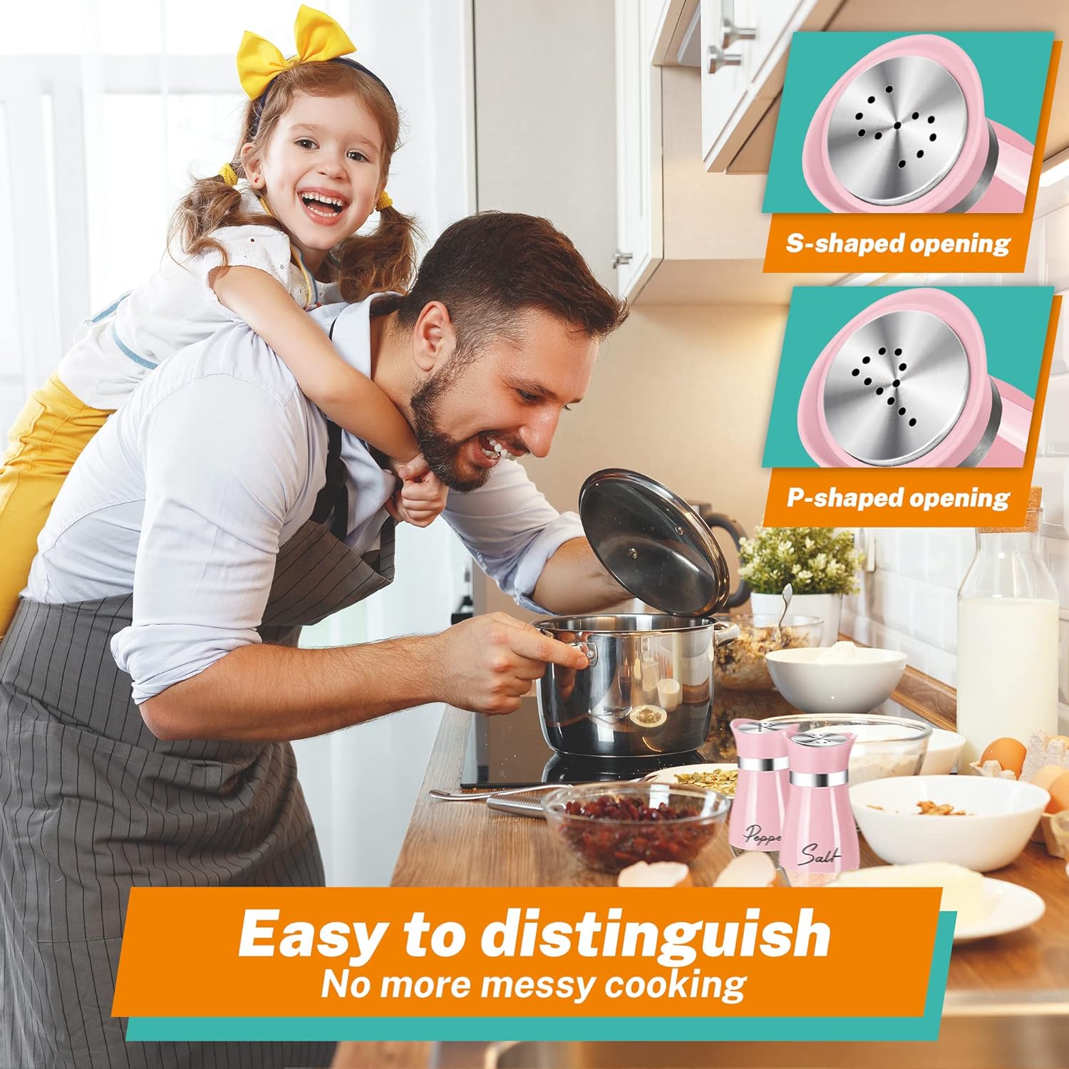 No Over-Seasoning:There are 11 small holes evenly distributed on the Stainless Steel Lid, you only need to shake 1-2 times at most to get the salt and pepper flowing just right, saving time and not over-seasoning. You and your family can enjoy the pleasuring of cooking
