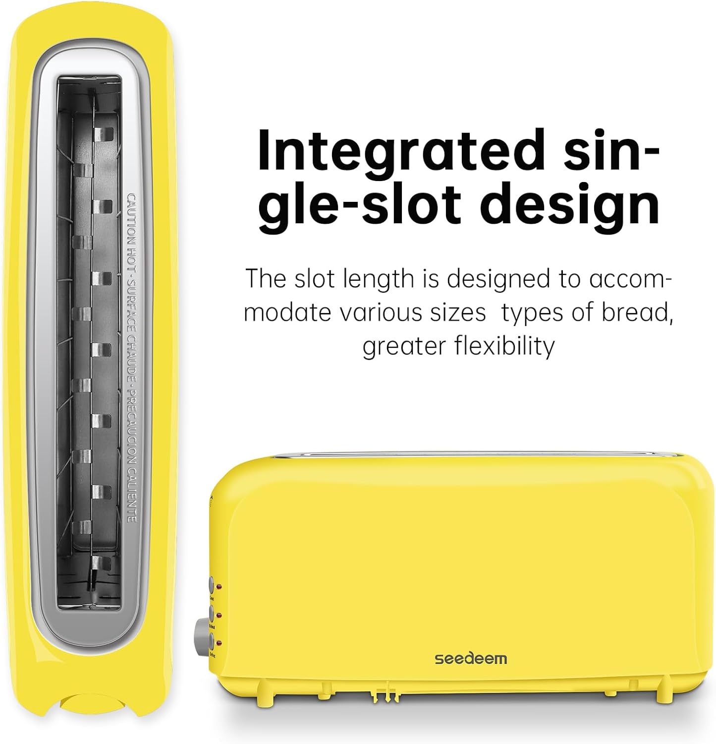 One Long Slot for 1 or 2 Slices:Featuring an extra-long, extra-wide bread slot, this toaster can evenly toast 2 standard slices or one long slice without the need for cutting. It accommodates various bread sizes for versatile toasting options.