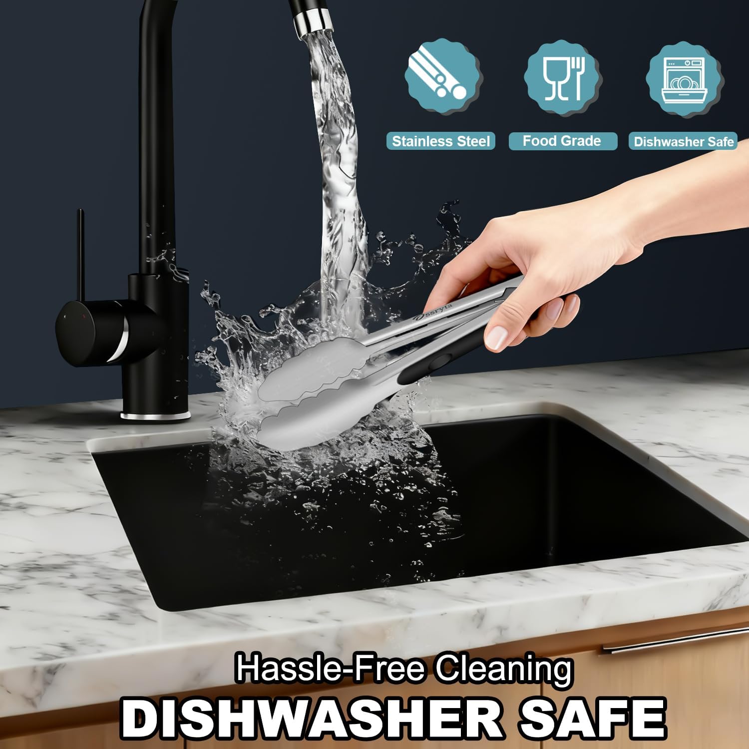 STAY COOL & IN CONTROL WITH ERGONOMIC DESIGN – Our tongs feature heat-resistant silicone handles that stay cool to the touch, even when flipping 600°F steaks. The contoured grip gives you perfect control for slippery foods, while the finger guard prevents accidental burns. Made for busy kitchens – simply toss in the dishwasher after use and they’ll come out looking brand new.