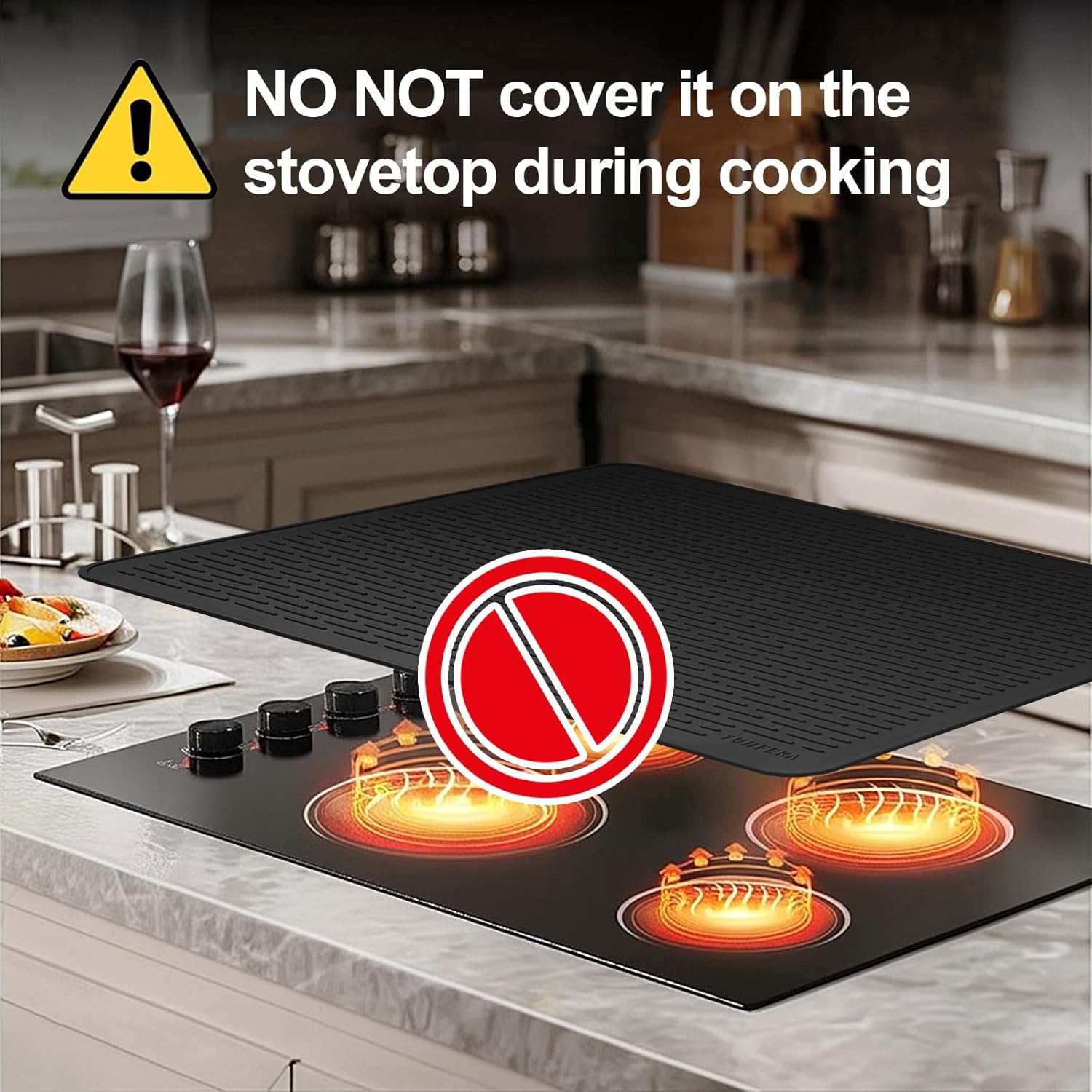 Anti Scalding Silicone Mat: Our glass-top stove cover doubles as a silicone trivet mat that can hold hot pots and pans. Heat resistant up to 400°F, its raised wide ridges separate the hot pot from the table and protect your kitchen surfaces from scalding. Attention!*Do NOT put the electric cooktop cover on the electric range while it’s ON to prevent damage.