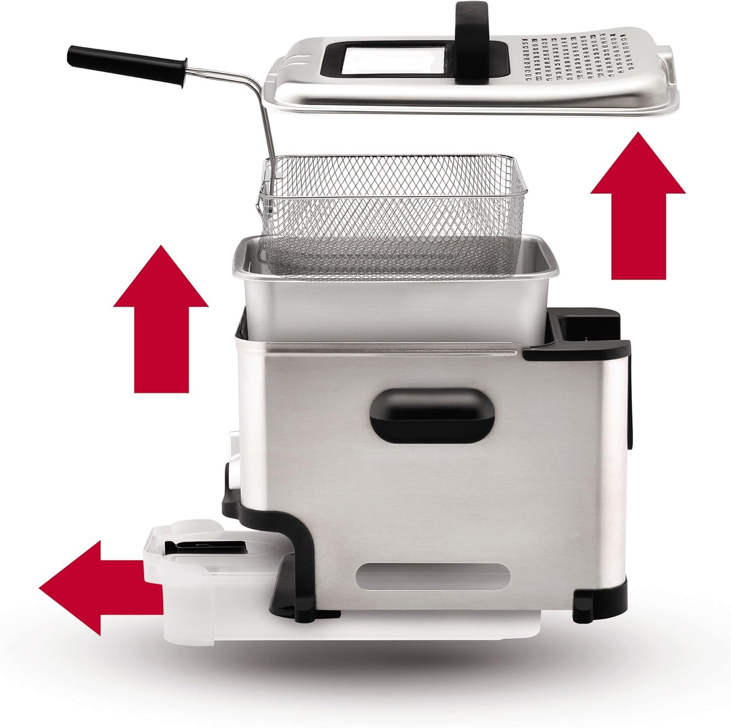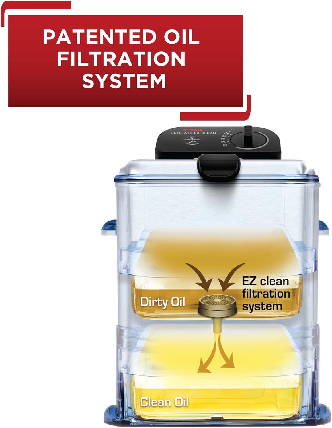 Oil Filtration System: Advanced technology automatically filters and stores oil in a sealed container ensuring easy cleanup and cost savings through reusable oil. Enjoy hassle-free deep frying with this innovative feature.