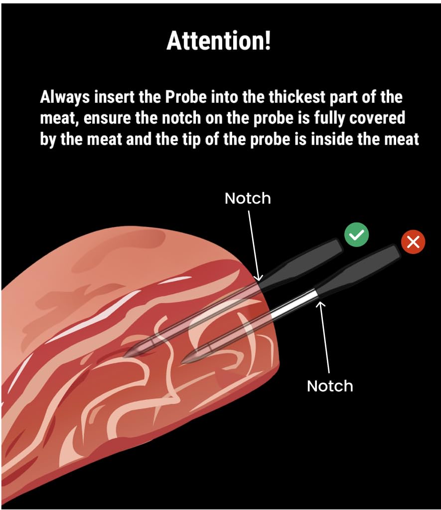 【100% Wire-Free & Waterproof Probe】Say goodbye to annoying Wires! 100% Wire-Free meat probes are easier to use and store, making this cooking thermometer for meat more suitable for rotisserie than other wired thermometers; The IPX8 waterproof rating makes the product safer against water damage, effectively extending the product’s service life