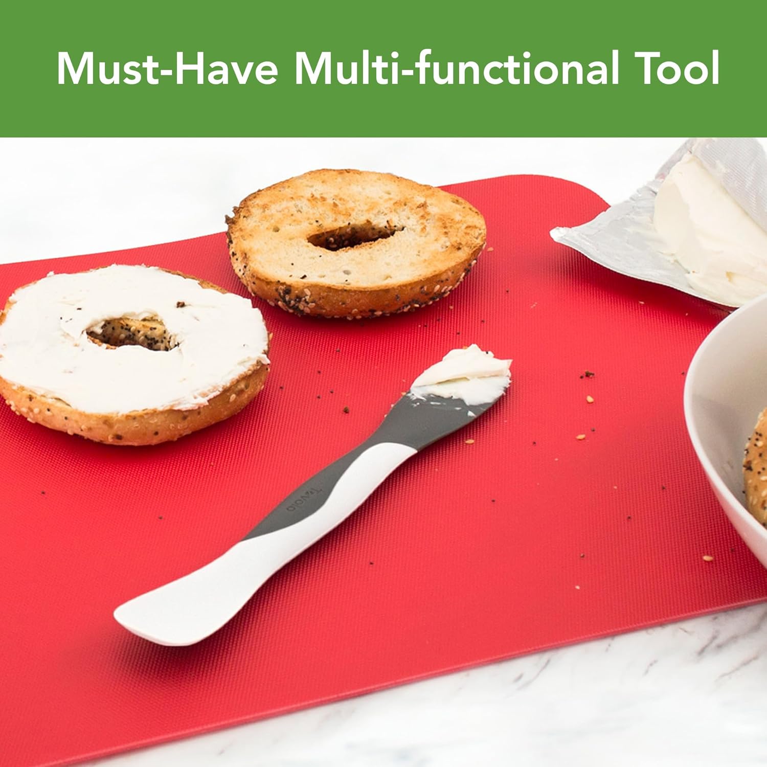 DURABLE MATERIALS: Made from BPA free silicone and nylon this mini scoop and spread tool withstands daily use and doubles as a small scoop and spread tool for soft cheeses dips and nut butters