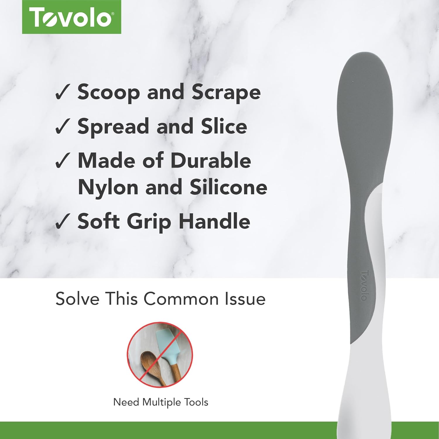 Crafted from BPA free silicone and nylon this durable small spreader doubles as a peanut butter spreader, frosting spreader and small sandwich spreader spatula. The sleek White and Charcoal Gray colorway brings bold style to your kitchen while the dishwasher safe design makes cleanup quick and effortless. Whether you use it as a silicone spreader tool, condiment spreader or jelly spreader the Tovolo Mini Scoop and Spread brings efficiency and creativity to every meal.