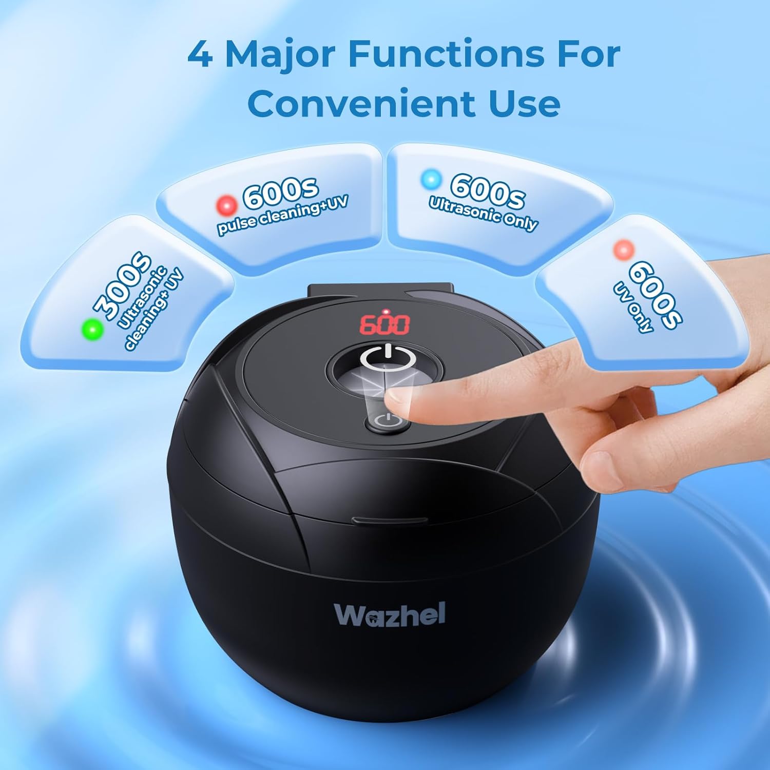 4 Cleaning Modes with Automatic Digital Timer: Ultrasonic retainer cleaner offers 4 cleaning programs: 1. Ultrasonic + UV (5-minute quick clean); 2. Pulse + UV (10-minute pulse care); 3. Ultrasonic only (10-minute deep clean); 4. Pure UV (10-minute care)