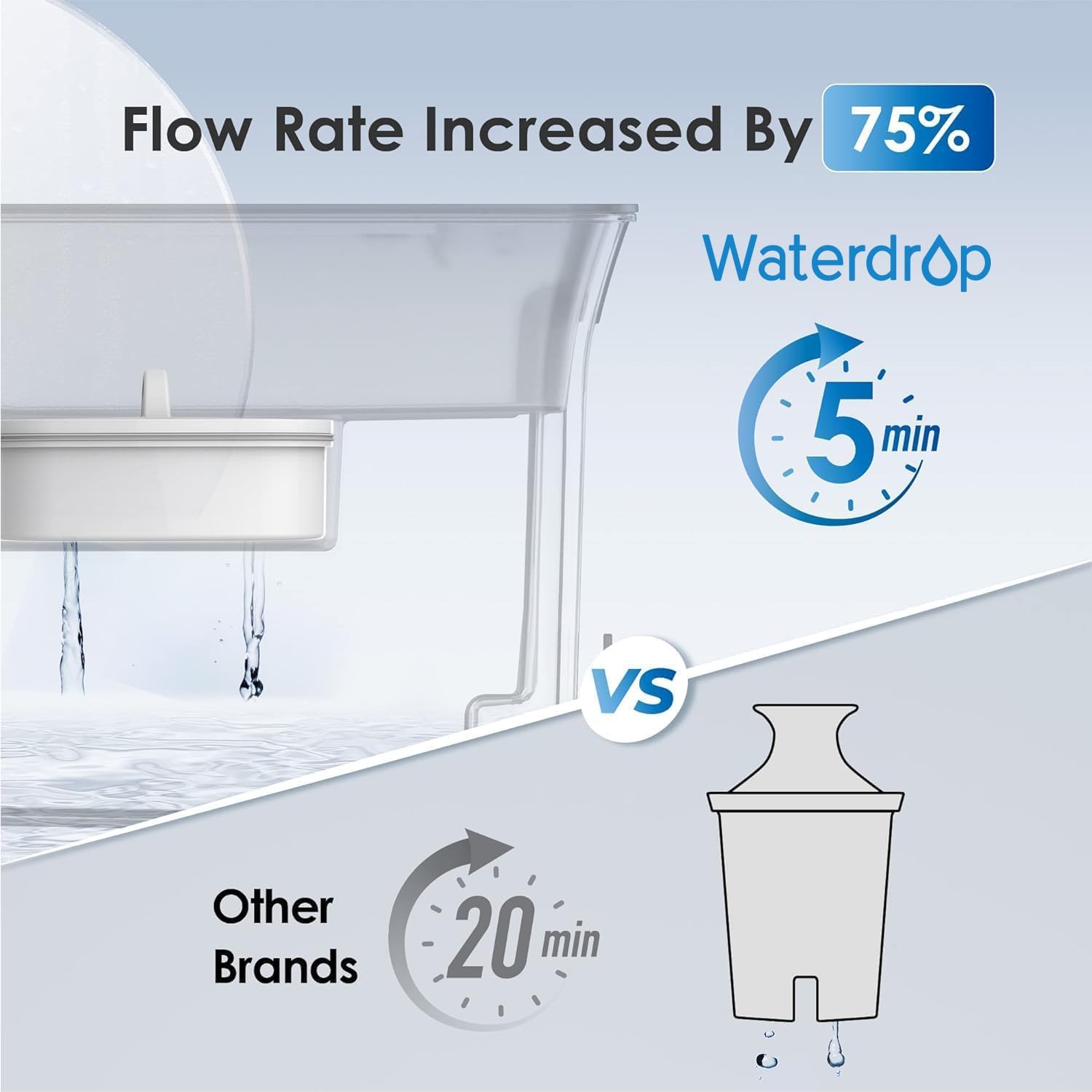 [4X flow rate, 5X lifespan]: While ensuring the filtration effect, the carbon fiber adopted by this water filter pitcher has 4X flow rate of competing products, and it can be fully filtered within 5 minutes. The 200-gallon or 2-month life is also 5X that of competing products.